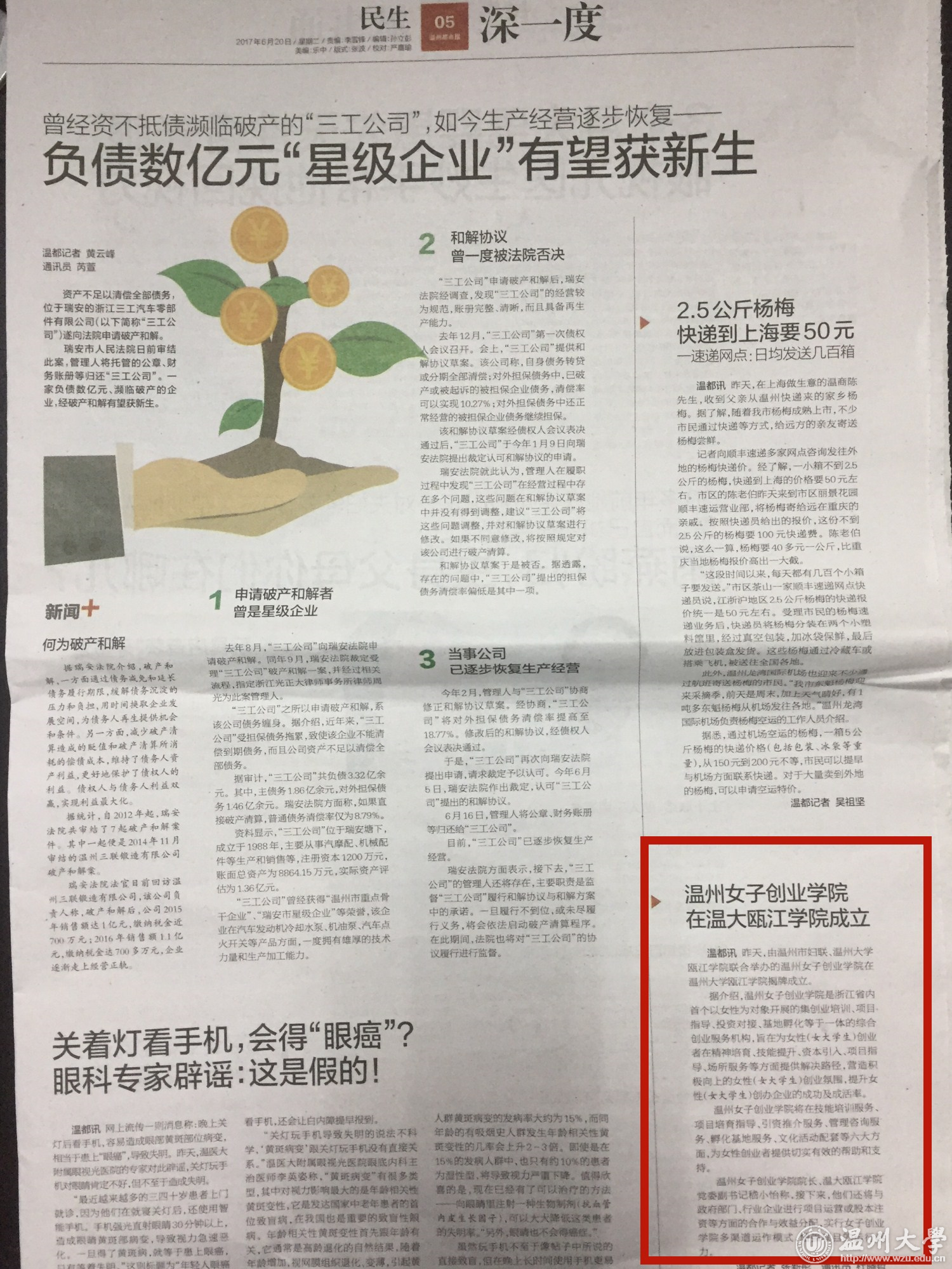温都讯 昨天,由温州市妇联、开云电子(中国)官方网站_开云电子(中国)官方网站瓯江学院联合举办的温州女子创业学院在开云电子(中国)官方网站_开云电子(中国)官方网站瓯江学院揭牌成立。 据介绍,温州女子创业学院是浙江省内首个以女性为对象开展的集创业培训、项目指导、投资对接、基地孵化等为一体的综合创业服务机构,旨为女性(女大学生)创业者在精神培育、技能提升、资本引入、项目指导、场所服务等方面提供解决路径,营造积极向上的女性(女大学生)创业氛围,提升女性(女大学生)创办企业的成功及成活率。 温州女子创业学院将在技能培训服务、项目培育指导、引资推介服务、管理咨询服务、孵化基地服务、文化活动配套等六大方面为广大女性创业者提供切实有效的帮助和支持。 温州女子创业学院院长、瓯江学院党委副书记嵇小怡称,接下来,学院还将与社会政府部门、行业企业进行项目运营或股本注资等方面的合作与效益分配,实行女子创业学院多渠道运作模式,增强项目的运行活力。 相关链接: 温州都市报:http://news.wendu.cn/2017/0619/668195.shtml