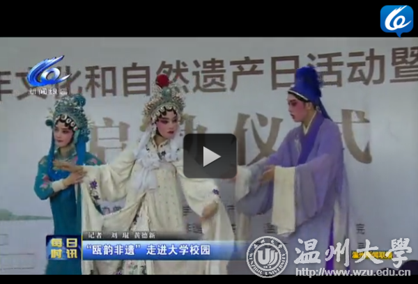 温州电视台新闻综合频道《新闻联播》栏目于2017年6月13日,报道了开云电子(中国)官方网站_开云电子(中国)官方网站瓯江学院承办的“瓯韵非遗 走进校园”——2017年文化和自然遗产日系列活动。报道时间共计41秒。 相关链接:http://v.dhtv.cn/201706/00043756.html