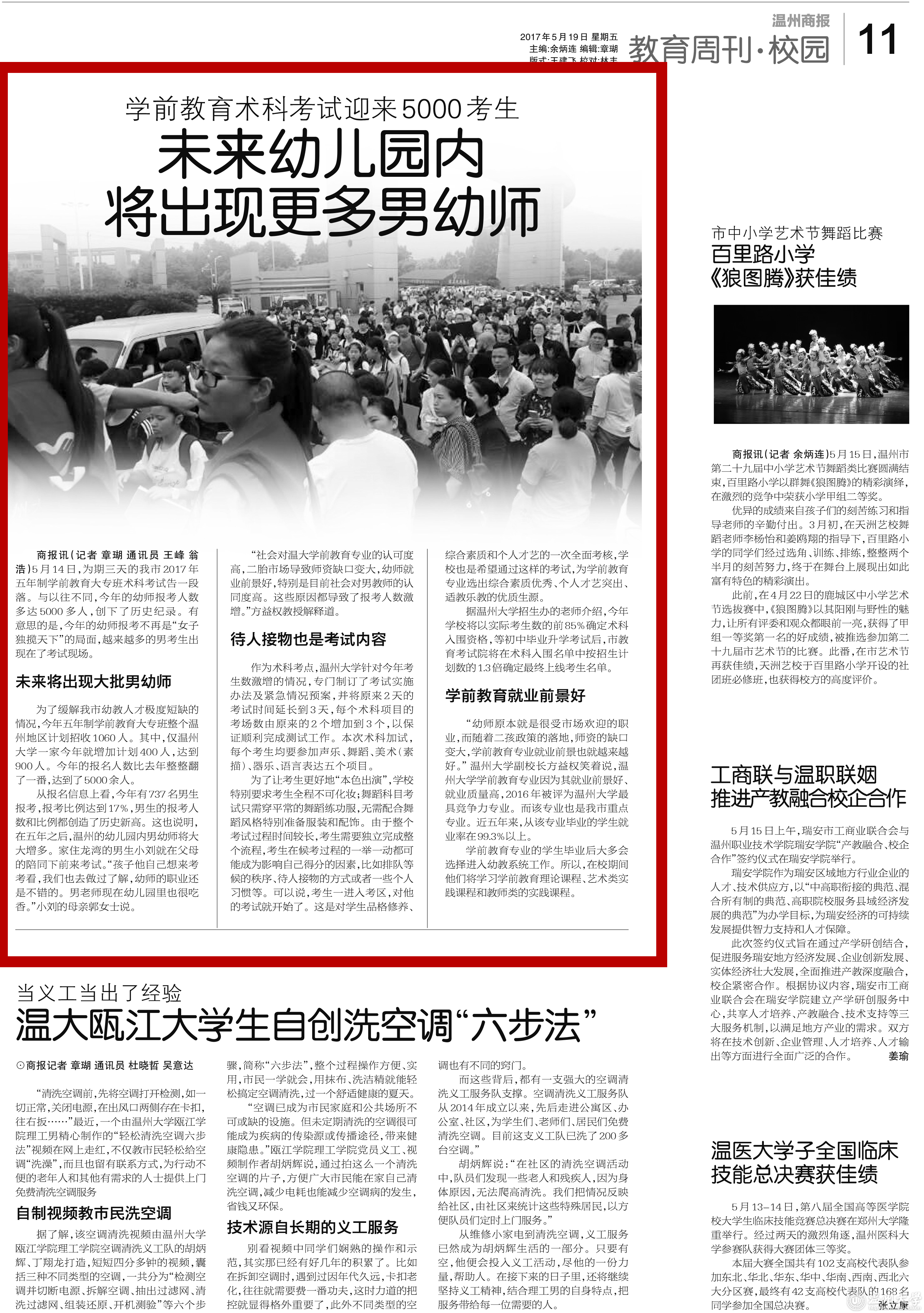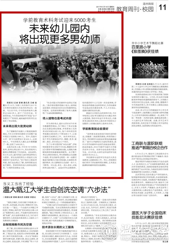 “社会对温大学前教育专业的认可度高,二胎市场导致师资缺口变大,幼师就业前景好,特别是目前社会对男教师的认同度高。这些原因都导致了报考人数激增。”方益权教授解释道。
