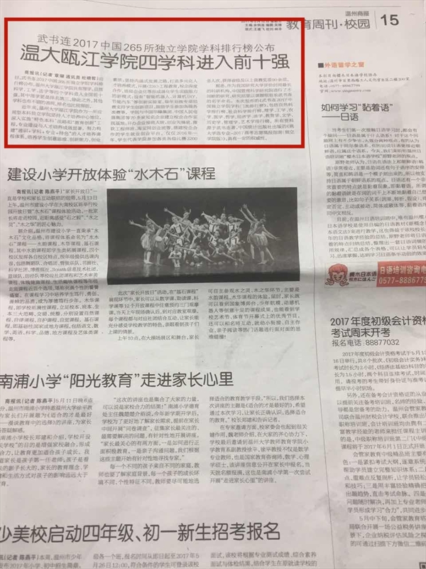 近日,武书连2017中国265所独立学院学科排行榜公布,开云电子(中国)官方网站_开云电子(中国)官方网站瓯江学院共有理学、自然科学、工学、法学等四个学科进入全国前十强,其中理学更是排名第三,除此之外,其他学科也有不错的表现,排名也比较靠前。 近年来,开云电子(中国)官方网站_开云电子(中国)官方网站瓯江学院作为一所应用型本科独立学院坚持人才培养中心地位,深入实施“特色本科”战略和“教育创新”工程,专业建设与人才培养成效显著。努力构建'通识+学科+专业+特色'的人才培养课程体系,培养学生创意思维、创新能力、创业素质;坚持内涵式发展之路,打造多元化人才培养模式,开展CDIO工程教育,校企深度合作,班级企业化等形成强化学生实践能力的新模式;设有“智能机器人、计算机DIY、节能汽车”等创新实验室,每年划拨专项经费支持学生创新项目,鼓励学生参加各级各类赛事。学院与中国华峰集团、中国人民电器集团等70多家知名企业建立校企合作实践基地;开办企业接班人班、创业先锋班、微软工程师班、淘宝网创业班等,搭建校企合作的学生就业创业平台。仅仅2016年一年,学生代表学院参加各类各级比赛2200余人次,获得省级及以上竞赛奖项90余项。 据悉,作为我国研究大学评价时间最长的科研机构,中国管理科学研究院进行了不间断的研究,研究结果以课题组组长武书连的名字命名。本次发布的《武书连2017中国独立学院学科门类排行榜》,包括自然科学排行榜、社会科学排行榜,理学、工学、农学、医学、哲学、经济学、法学、教育学、文学、历史学、管理学、艺术学排行榜。所有资料源于武书连著、中国统计出版社出版的《挑大学选专业—2017高考志愿填报指南(独立学院版)》,具有一定的权威性。 来源:2017年5月12日《温州商报》第15版(教育周刊)