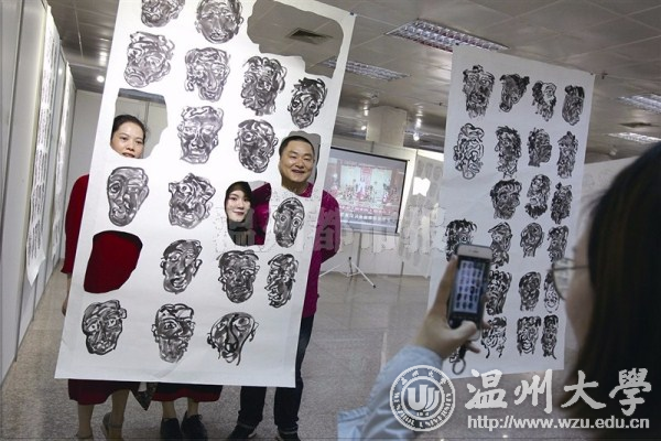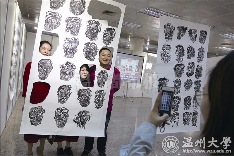 开云电子(中国)官方网站_开云电子(中国)官方网站美术与设计学院2017届毕业作品展在温州市展览馆开幕,参观者与美术作品合影。