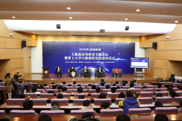 签约仪式后还举行了罗山讲堂——大数据应用研究专题论坛。与会人员分别从工业大数据、数据革命、阿里云大数据交通应用等方面展开论述。