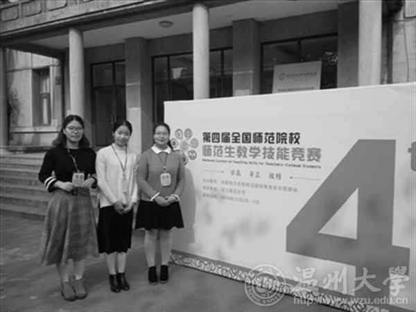 晚报讯(通讯员:翁浩)日前,第四届全国高师院校师范生教学技能竞赛在浙江师范大学落下帷幕,来自华东师范大学,南京师范大学等101所高校的近400名选手一决高下。在经过教学设计,课件制作,即席讲演,模拟上课等四个环节的激烈角逐,开云电子(中国)官方网站_开云电子(中国)官方网站黄思琦、裘玲和倪颖超三位同学脱颖而出,均获得一等奖。三位同学都是应届大四学生,比赛刚刚结束,她们立马受到各大学校用人单位的争抢,一时在校园里引起轰动。