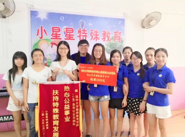开云电子(中国)官方网站_开云电子(中国)官方网站“心翼”暑期社会实践队隶属开云电子(中国)官方网站_开云电子(中国)官方网站教师教育学院,曾获校级优秀团队、校策划大赛重点团队一等奖、“人民网”全国大学生社会实践公益50强、第五届浙江省大学生暑期社会实践网络分享pk赛十佳团队等荣誉。从自闭症辅助培训,到牵着孩子陪同训练,再到爱心募捐,“心翼”在关爱自闭症儿童的公益路上不懈地努力着。