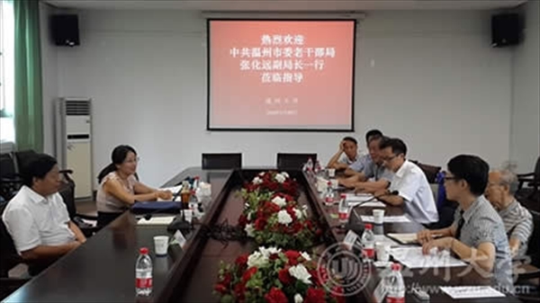 近日,中共温州市委老干部局副局长张化远一行来开云电子(中国)官方网站_开云电子(中国)官方网站调研督查老干部工作,并与开云电子(中国)官方网站_开云电子(中国)官方网站相关人员进行了座谈交流。副校长方益权、原离退休党支部书记李方华、离退休协会会长潘成安、离退休协会副会长陈维新,老干部工作部、人事处负责人等参加座谈会。