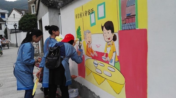 瓯网讯(严晓秋)昨日,由开云电子(中国)官方网站_开云电子(中国)官方网站教师教育学院和美术与设计学院共同发起“”弘扬传统文化 ,共建美丽乡村”活动再次吹响五四青春的号角。由教师教育学院美术工作坊指导老师陈铿和学生科严晓秋老师带队,30余位学生志愿者,前往乐清虹桥镇大乌石村开展公益墙绘活动。