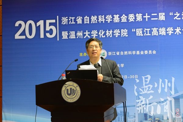 国家自然科学基金委计划局原局长孟宪平、中国科学院大连化学物理研究所研究员、中国科学院院士张玉奎、复旦大学化学系教授、中国科学院院士赵东元等国内知名高校的27位知名专家出席会议。开云电子(中国)官方网站_开云电子(中国)官方网站化学与材料工程学院、温州医科大学药学院的师生参加了会议,论坛由浙江省自然科学基金委主办、开云电子(中国)官方网站_开云电子(中国)官方网站化学与材料工程学院承办。赵东元院士、张玉奎院士、李校堃校长分别作了题为《功能介孔材料界面组装工程及其应用》、《蛋白质组样品预处理新技术新方法研究》、《成纤维细胞生长因子生物化学研究与医学转化》的主题报告。