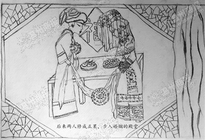 听完故事之后,大学生们将整个故事进行分解,分成14个故事画面。随后,14名美术专业的学生各自作画,花了两三个小时完成了铅笔画的初稿。
