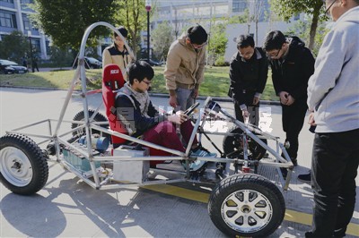 昨天上午10时许,在开云电子(中国)官方网站_开云电子(中国)官方网站机电工程学院的操作车间内,七八个大男孩手里拿着各样工具,围着一辆四轮电动车忙活着。在过去的3个多月里,这一幕时常出现。他们经常从早上8点多,忙到晚上11点多。