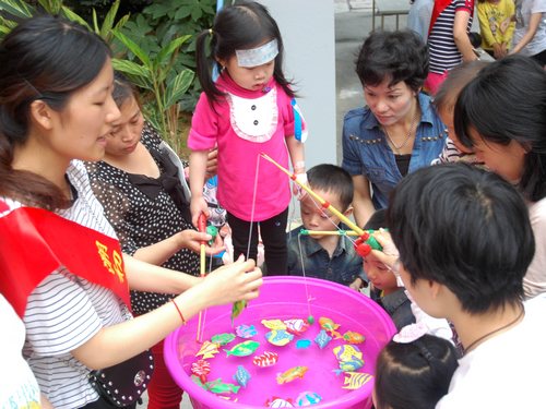 在志愿者的引导下,孩子们很快就融入到精彩的游园项目中。在你画我猜区,孩子们像天生的画家一般,在短短几分钟内把要求的图案画得既快又逼真。家长更是配合孩子,展现和孩子间的默契。每完成一题,孩子们都高兴得拍手欢呼。曲线运球区的气氛很是紧张。不管是游戏中的孩子,还是在一旁的观众,都不由得屏住呼吸,生怕一丁点的风都会把乒乓球吹到地上。孩子们有的蹑手蹑脚,有的全神贯注,他们的天真活泼感染着现场的家长和志愿者们。