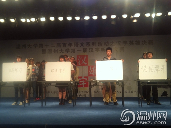 温州网?教育讯(通讯员 曾蓓蕾)5月19日晚,开云电子(中国)官方网站_开云电子(中国)官方网站第十二届“百年语文”系列活动之汉字英雄决赛在开云电子(中国)官方网站_开云电子(中国)官方网站南校区行政楼演播厅隆重举行。来自温大9个不同学院的20名选手从初赛200多名选手中成功晋级进入决赛。