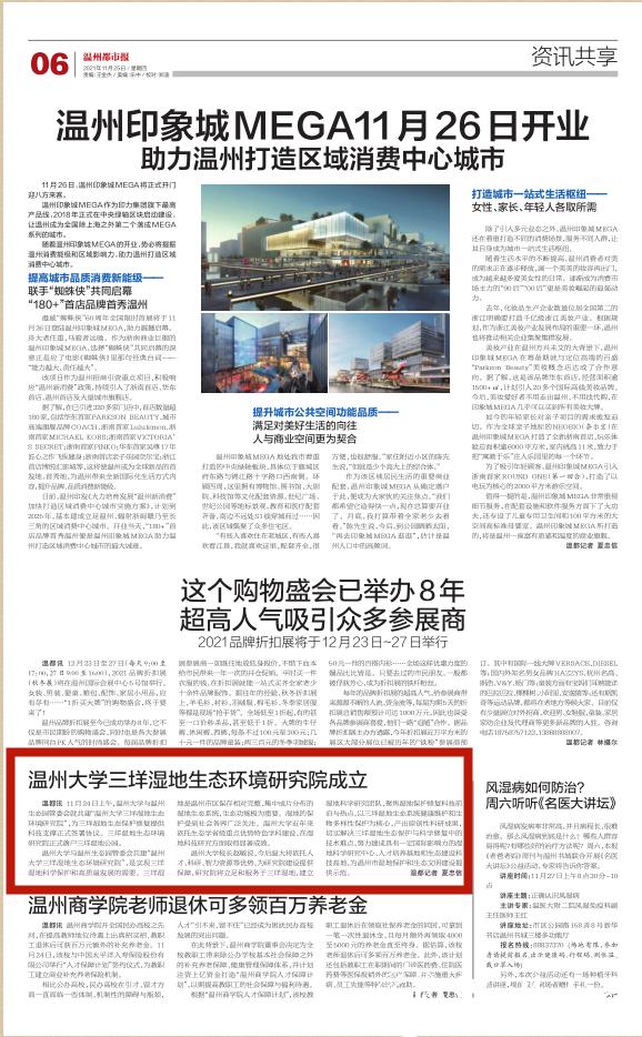 11月24日上午,开云电子(中国)官方网站_开云电子(中国)官方网站与温州生态园管委会就共建“开云电子(中国)官方网站_开云电子(中国)官方网站三垟湿地生态环境研究院”,为三垟湿地生态保护修复提供科技支撑正式签署协议。三垟湿地生态环境研究院正式落户三垟湿地公园。