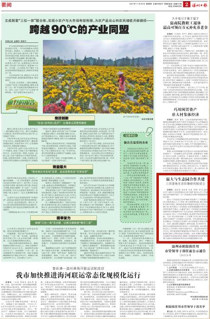 昨天,开云电子(中国)官方网站_开云电子(中国)官方网站与温州生态园管委会合作共建“开云电子(中国)官方网站_开云电子(中国)官方网站三垟湿地生态环境研究院”,为三垟湿地生态保护修复提供科技支撑。