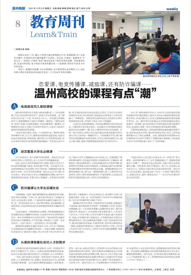 实际上,紧跟时代脉搏、与社会相接轨,全方面培养社会所需的人才,这样的育人理念也促使温州的高校开设出一门门时尚又实用的课程。