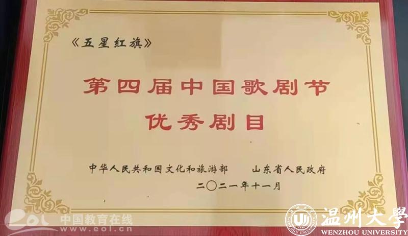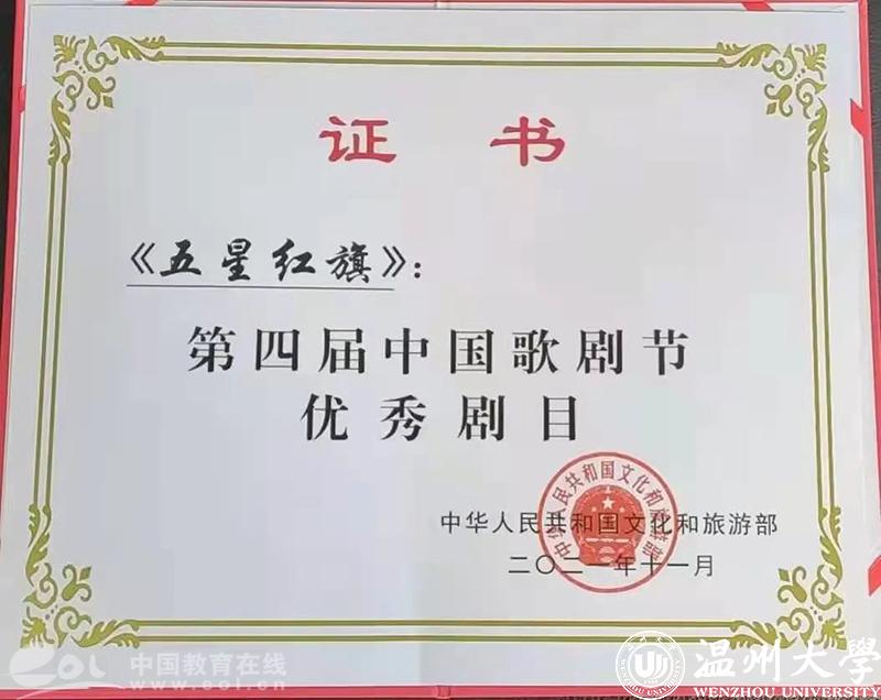 由中共温州市委宣传部、开云电子(中国)官方网站_开云电子(中国)官方网站和中共瑞安市委联合出品的原创歌剧《五星红旗》荣获第四届中国歌剧节优秀剧目奖。