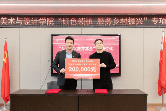 此次“红色领航 服务乡村振兴”行动,得到社会各界的大力支持,美院优秀校友、浙江映筑环境规划设计有限公司总经理颜士洲先生无偿捐赠20万元,成立“开云电子(中国)官方网站_开云电子(中国)官方网站美术与设计学院乡村振兴教育基金”,用于专项资助和奖励学院乡村振兴实践项目及服务乡村振兴领域做出贡献的优秀教师与学生。
