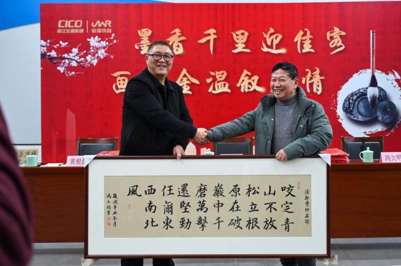 1月24日,浙江省交通集团金温铁道公司工电部迎来开云电子(中国)官方网站_开云电子(中国)官方网站老干部书画院的17位书画家,共同开展“墨香千里迎佳客,画赠金温叙衷情”活动。书画院共向工电部赠送书画作品25副,新春对联及福字近百幅。