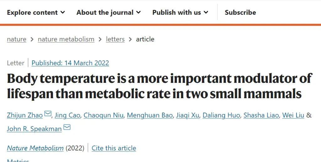 “从20世纪90年代后期,我们就开展了一系列研究探索代谢率与衰老之间的关系。我们通过对这些实验进行合作研究,试图阐明代谢和体温的作用,明确了体温的作用可能为尽快探究对寿命的潜在影响因素打开一扇门。”论文共同通讯作者斯彼克曼院士表示。