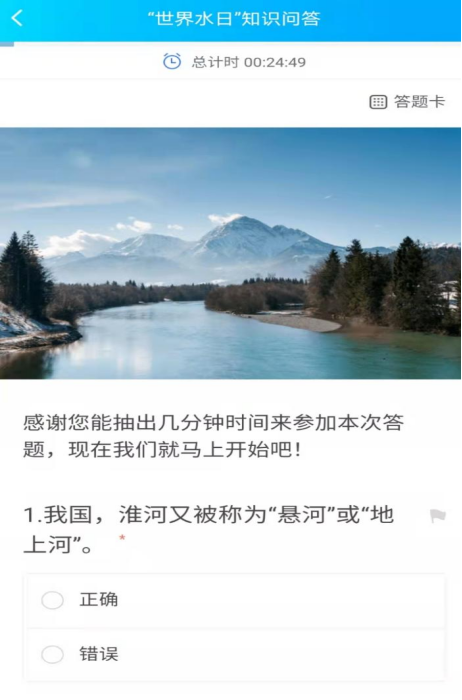 知识竞赛围绕我国基本水情、节约用水基本知识、节约用水方针政策与法律法规等内容,吸引400余人通过网络链接积极参与答题。