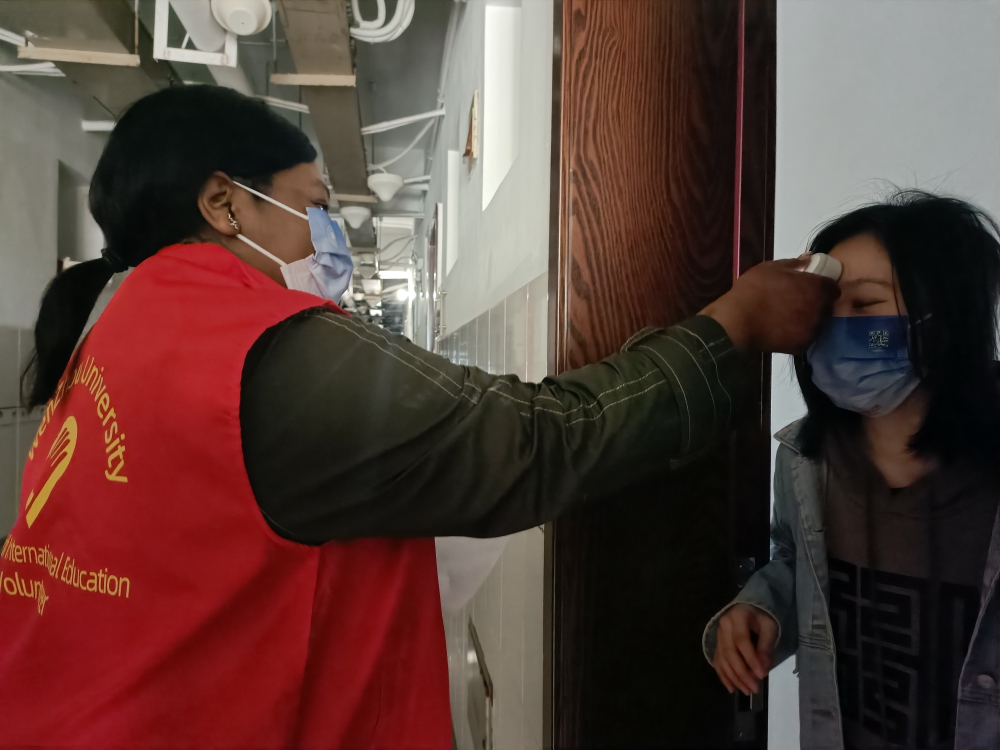 在开云电子(中国)官方网站_开云电子(中国)官方网站,来自津巴布韦的REJOICE,2021年本科毕业后,选择继续留在开云电子(中国)官方网站_开云电子(中国)官方网站就读国际法专业硕士研究生。2020年新冠肺炎疫情爆发后,学院紧急成立留学生抗击疫情志愿者队伍。REJOICE是第一个报名参加的留学生,后来为了方便开展日常测温工作,她选择从校外搬回到留学生公寓住宿。每天两次的测温,她已经坚持了快两年,累计志愿者时长更是高达400余小时。她说,“我是外国人,但不是外人,我愿意利用所学知识,为温州、为学校贡献自己的微薄之力,因为温州就是我的第二故乡。”