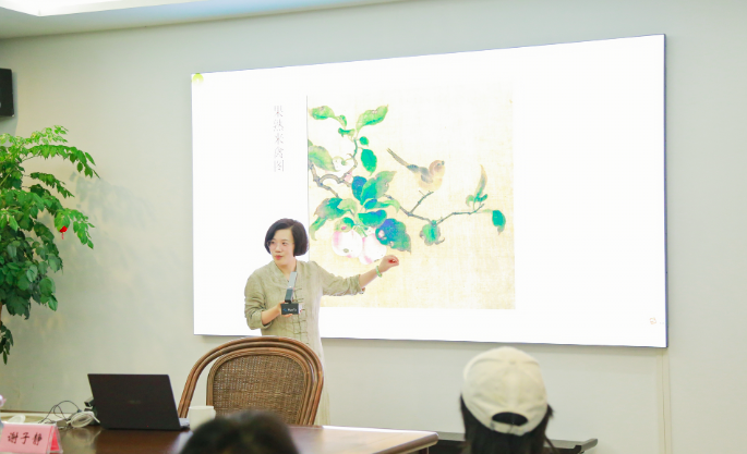 “宋韵文化的重要内涵是雅俗共赏”,她分享了宋朝的极简美学与“萧、散、简、远”的苏轼美学,鼓励文化爱好者欣赏宋画需从“气韵生动之美,意境之美”两方面,并以宋人小品为例,侧重讲解了宋代花鸟画的生动。活动中,谢子静教授用通俗易懂的言语,结合精美的花鸟画作品,分享自己的创作感悟,如珠玉般的精彩发言,使得讲座充满热烈而浓厚艺术氛围。