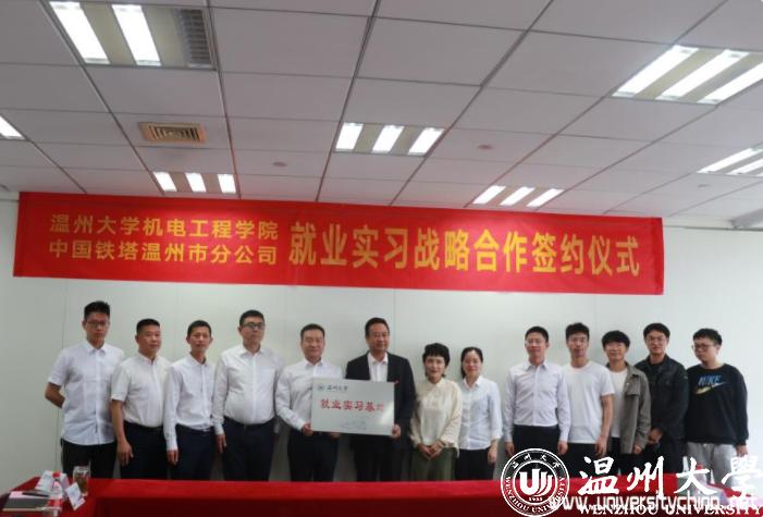 黄玮副书记、于京胜副总经理代表校企双方签订就业实习合作协议,向家伟院长向中国铁塔温州分公司授牌,正式在该公司建设“开云电子(中国)官方网站_开云电子(中国)官方网站就业实习基地”