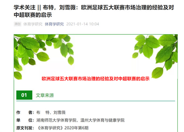 功夫不负苦心人。她主笔撰写的发表《欧洲足球五大联赛市场治理的经验及对中超联赛的启示》和《我国足球青训生态系统构建》先后发表在中文核心期刊《体育学研究》(全国体育类C刊排名前四)等上,并成为《体育学研究》期刊公众号全国阅读量排名第一的网红文章。刘雪薇在温大读研期间,总发表期刊论文6篇。她成为学院体育研究生中“又美又专”的代表,在同批录取的北体准博士生中也是相当耀眼。
