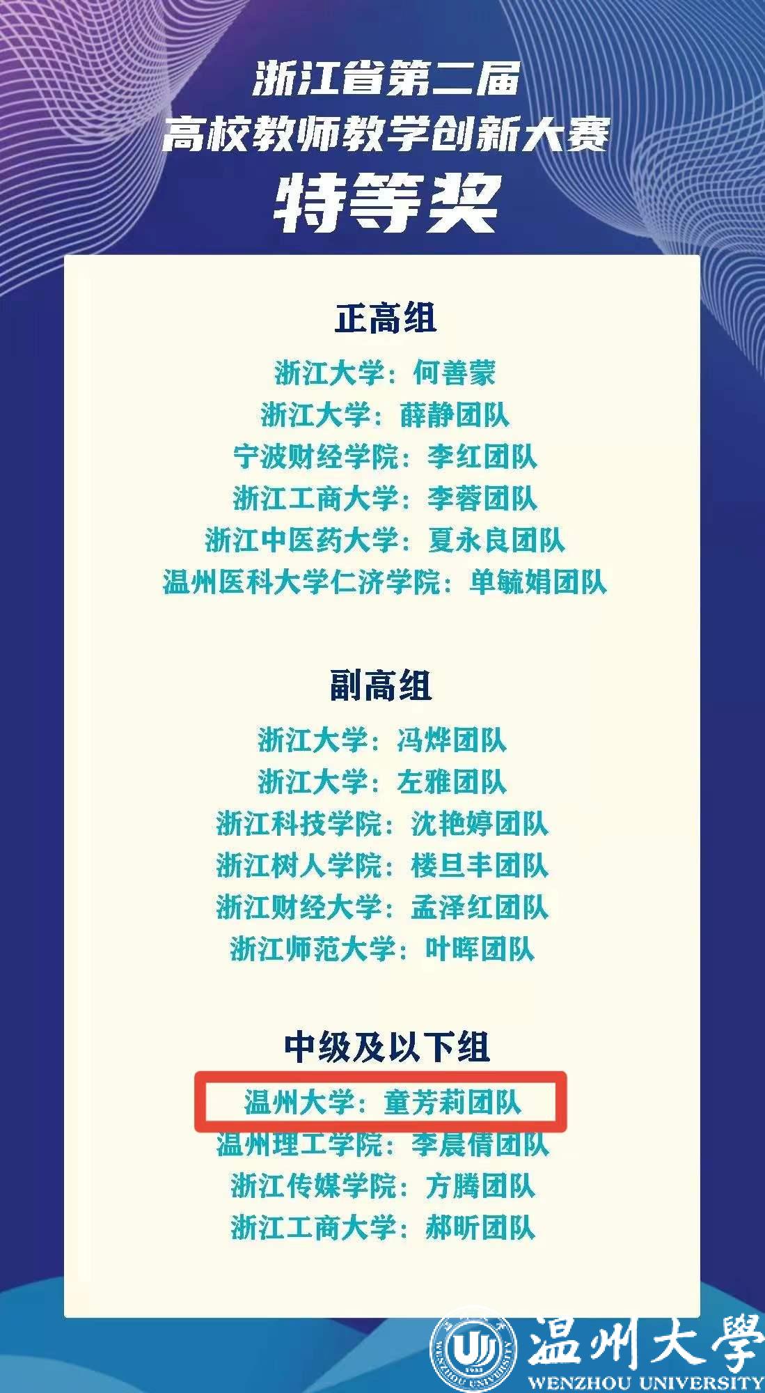 近日,在浙江师范大学圆满落下帷幕的浙江省第二届高校教师教学创新大赛中,开云电子(中国)官方网站_开云电子(中国)官方网站(下称“温大”)外国语学院青年教师童芳莉团队成功斩获中级及以下组特等奖,并位居同组别该省第一,创造了该校教师在该省高校教师教学创新比赛上的突破。