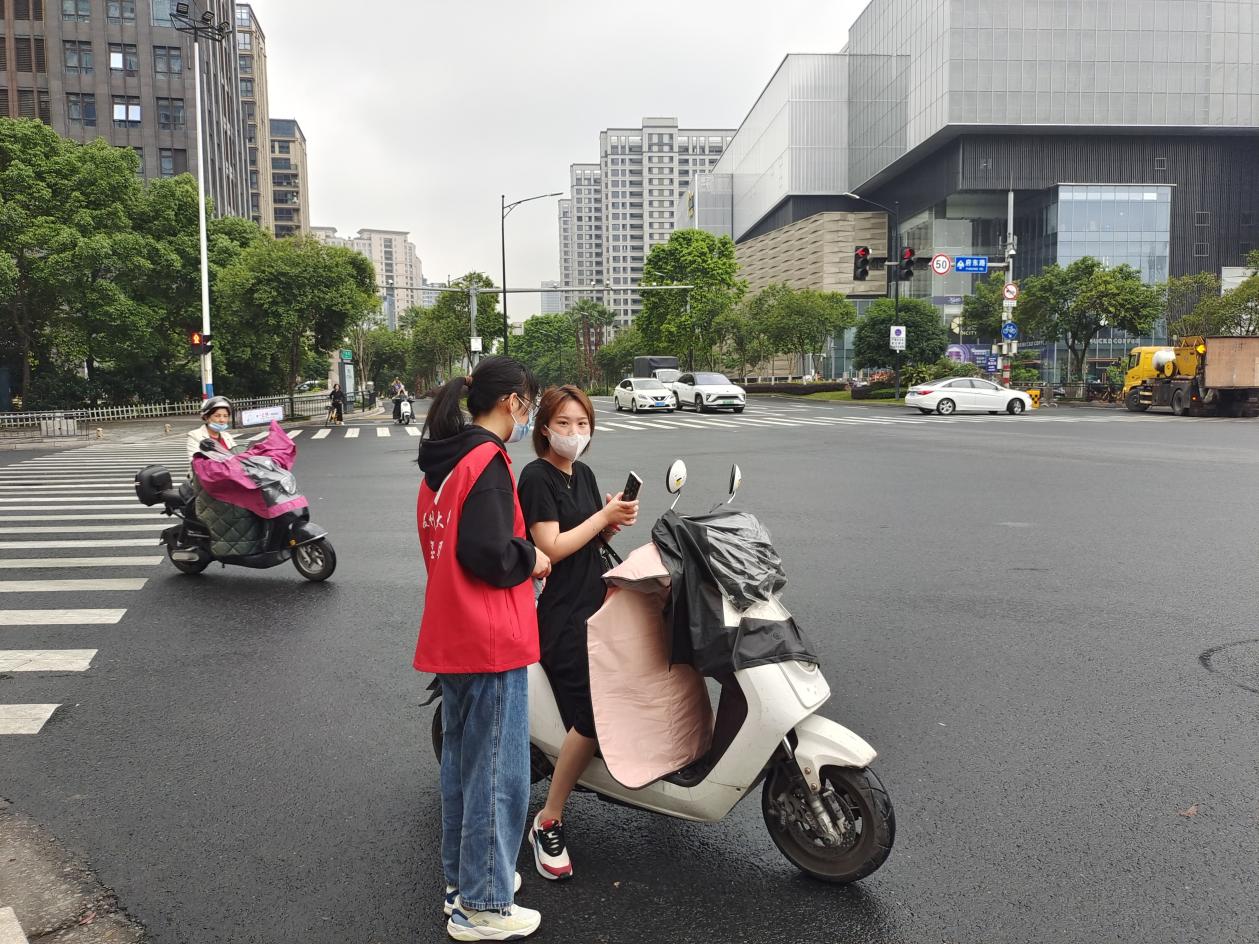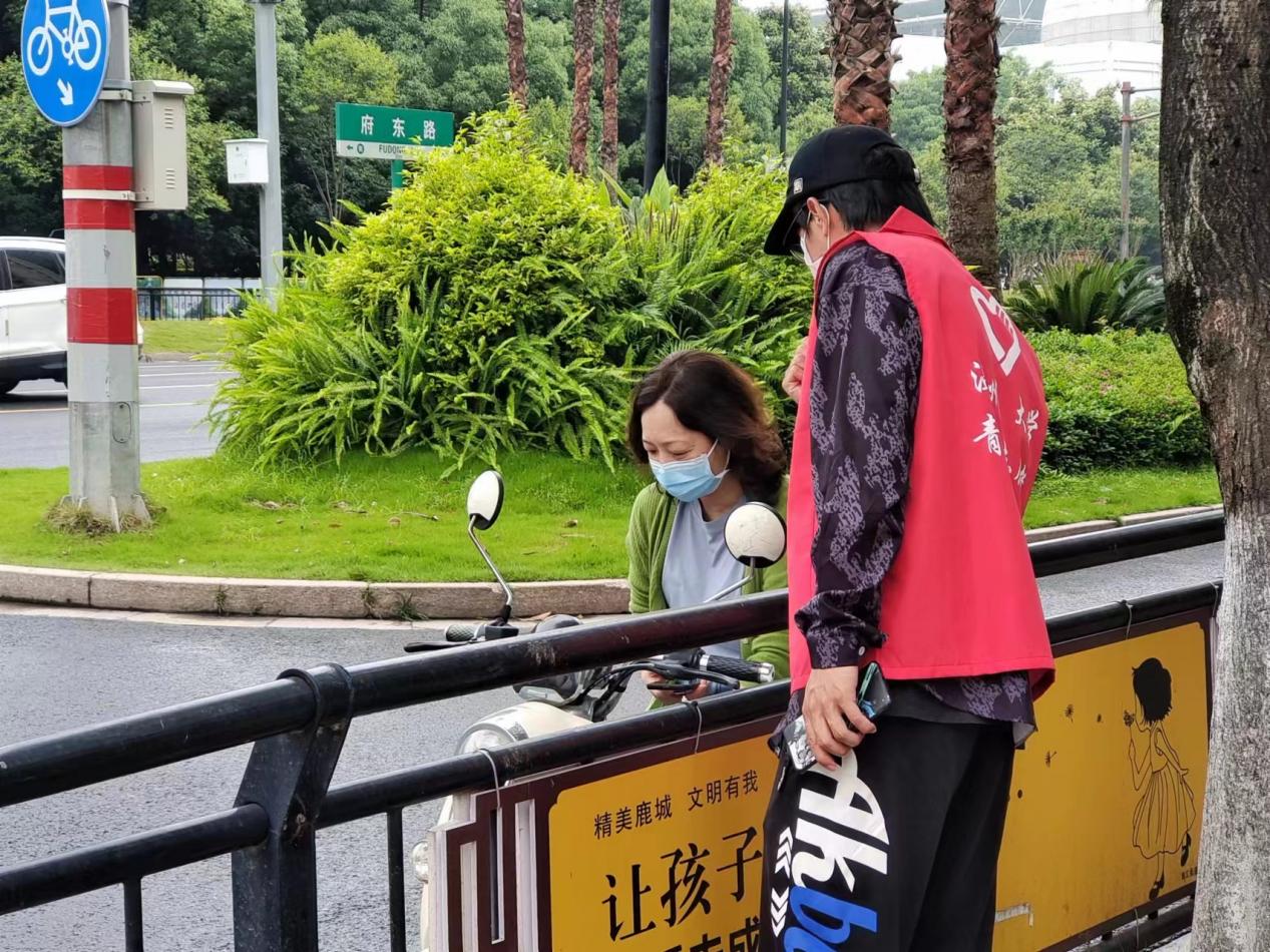 在府东路与市府路的交叉路口、锦江路与府东路的交叉路口等路口,志愿者们认真做好路口值守,劝阻机动车不礼让斑马线、非机动车越线停车、行人越线等候行人等不文明交通行为;及时对未佩戴安全头盔的电动车驾驶员进行提醒,并耐心劝导其佩戴头盔后方可通行。