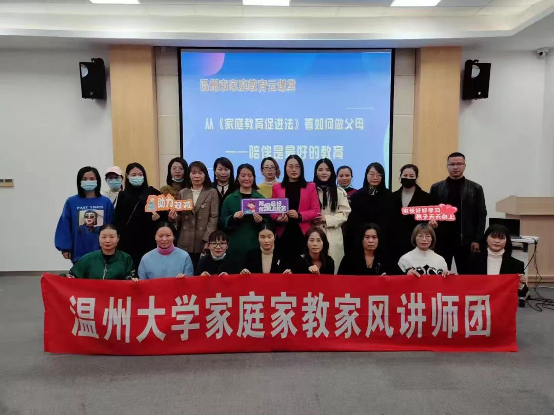 她把家庭教育作为主要方向,为学生开好家庭教育新课程,为家长做好家庭教育新讲座。《家庭教育学》、《社区与家庭教育》等关联课程,是她为温大学生开设的课程,建成省级一流课程,出版教材《家庭教育理论与实践》。她为家长精心准备《做好孩子的引路人》《学会做人,家庭教育的根和魂》《掌握亲子沟通的密码》《教育就是培养习惯》等讲座。在她的一场讲座开始前,一位头发花白的老大爷上前来问,能不能使用录音笔录音。他想把整个课程都录下来,交给自己的儿子和媳妇学习。周老师愉快地答应下来。没想到的是,在接下来的第二场、第三场讲座中,仍旧出现了老大爷的身影。在课后的交流中,老大爷告诉周老师,儿子常年在外地经商,孙子刚上小学,“隔代教育”总会出现各种问题,所以就特地过来请教专家。老大爷的用心深深感动了在场家长,周老师也深感责任在肩。