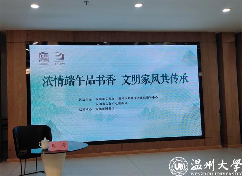 6月2日下午,由温州市文明办、温州市文化广电旅游局主办,温州市图书馆承办的“浓情端午品书香 文明家风共传承”主题道德讲堂活动在温州市图书馆四楼品读区举行。