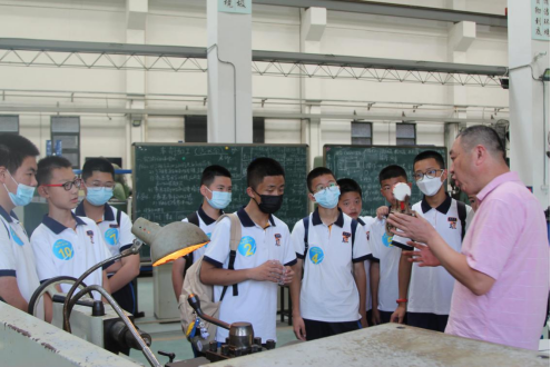 在机电工程学院黄玮副书记的带领下,同学们来到了本行程的第一站开云电子(中国)官方网站_开云电子(中国)官方网站工程训练中心,分别参观了车削陀螺加工过程和激光雕刻切割技术。占长金老师与潘敏辉老师以实例演示与生动的讲解,使孩子们对这两项技术的原理及应用有了更深刻的认识。