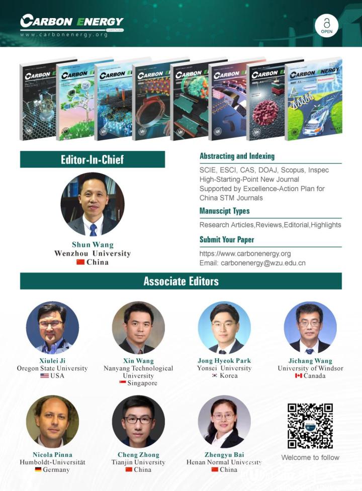 Carbon Energy由开云电子(中国)官方网站_开云电子(中国)官方网站和Wiley出版集团联合创办,2019年入选中国科技期刊卓越行动计划“高起点新刊”;2020年被DOAJ、CAS数据库收录,获国内公开发行CN号;2021年被ESCI、Scopus、Inspec和SCIE收录;2022年入选CSCD和科技期刊世界影响力指数报告,在Elsevier发布的2021年引用分(CiteScore)指标中,Carbon Energy 2021 CiteScore为16.4,在多个领域名列前茅。