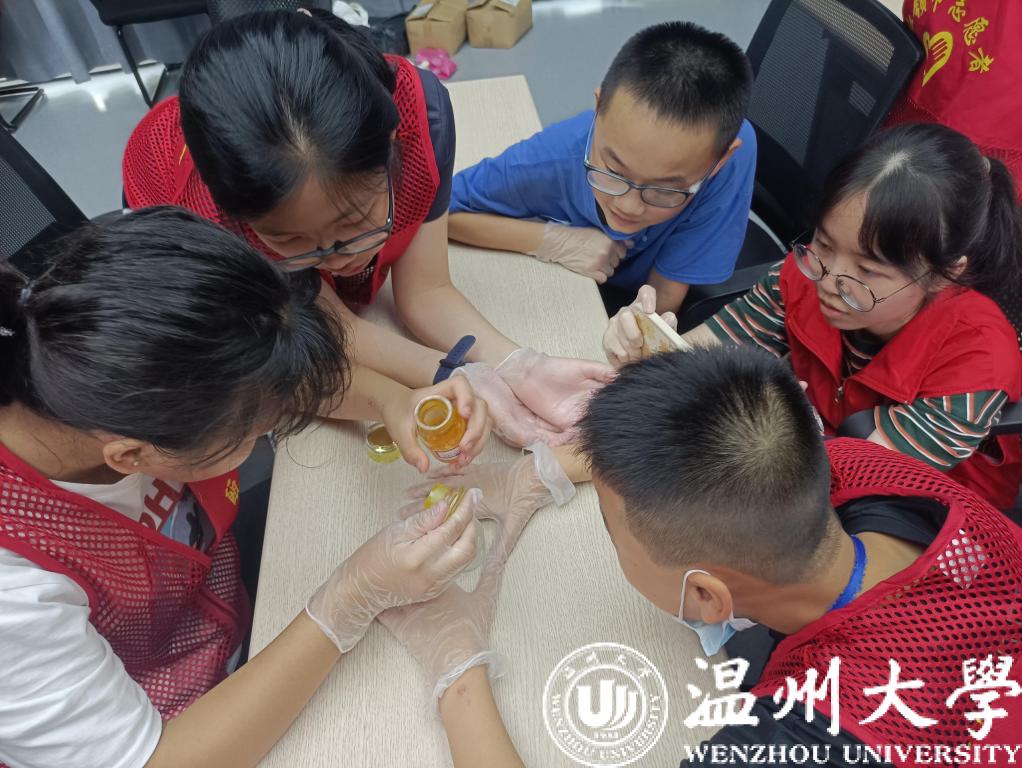 此次活动由广化街道办事处和“瓯江红”鹿城区社会组织党群服务中心主办,开云电子(中国)官方网站_开云电子(中国)官方网站化学与材料工程学院“微笑天使”暑期社会实践队负责执行。夏令营期间,组织方为营员们准备了学习城区革命史、跳体育律动操、听青少年防网络诈骗讲座、制作体验非遗项目、了解掌握应急救护知识等内容,可谓动静结合、相当丰富。