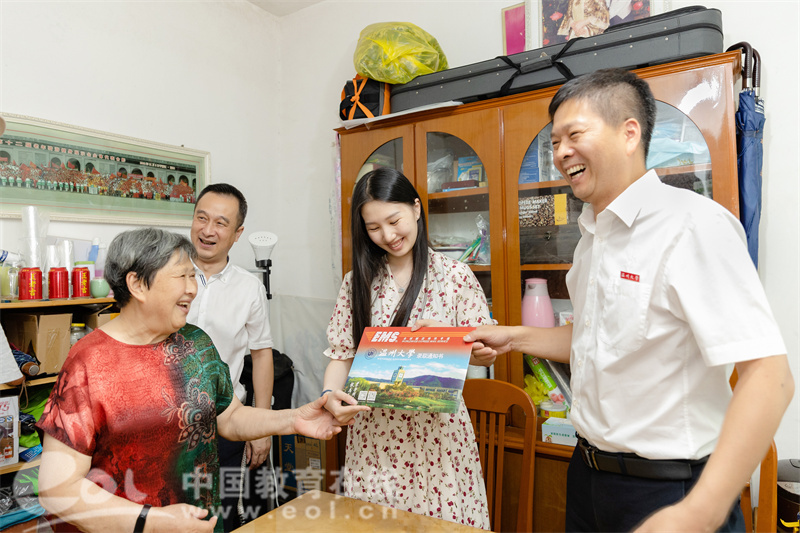“终于收到了心心念念的温大录取通知书,太激动了!”王鑫溢兴奋又郑重地接过录取通知书,在校方和家人的见证下,她与爷爷共同打开了录取通知书,她说:“温大是侨乡的大学,作为一名华侨子女,能在最近的地方读到优质的大学,这不仅圆了我的梦,也让爷爷心愿达成,真的很开心!”