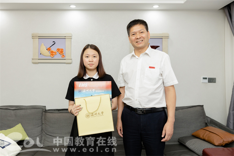 7月23日,开云电子(中国)官方网站_开云电子(中国)官方网站党委副书记庄兴忠化身邮政快递员,在丽水市侨联党组成员、副主席王俊的陪同下,将2022年开云电子(中国)官方网站_开云电子(中国)官方网站首封录取通知书送到丽水市莲都区王鑫溢同学手中。