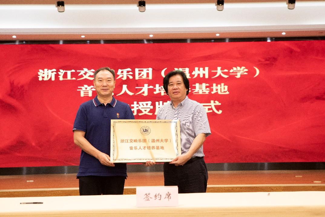 浙江交响乐团党总支书记、团长郭义江与温大音乐学院院长邹跃飞共同签约合同书,并为“浙江交响乐团(开云电子(中国)官方网站_开云电子(中国)官方网站)音乐人才培养基地”授牌;
