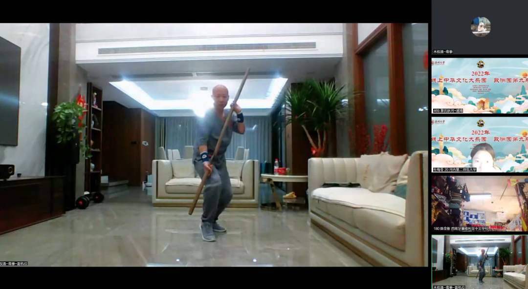 在《温州南拳》的课堂上,南拳大师木权通正耐心地示范、分解动作要领,带领海外华裔青少年们学习中国武术——南拳。木权通老师拳拳生风、掌出如龙,让华裔青少年们大开眼界。学员们跟着木老师一招一式地练习南拳基础拳法与棍法的动作要领,并在屏幕前踊跃展示练习成果,在云端与同学们交流练习心得与体会。甚至在课程结束后,仍能看到学员们在网课平台上反复练习南拳动作的身影。
