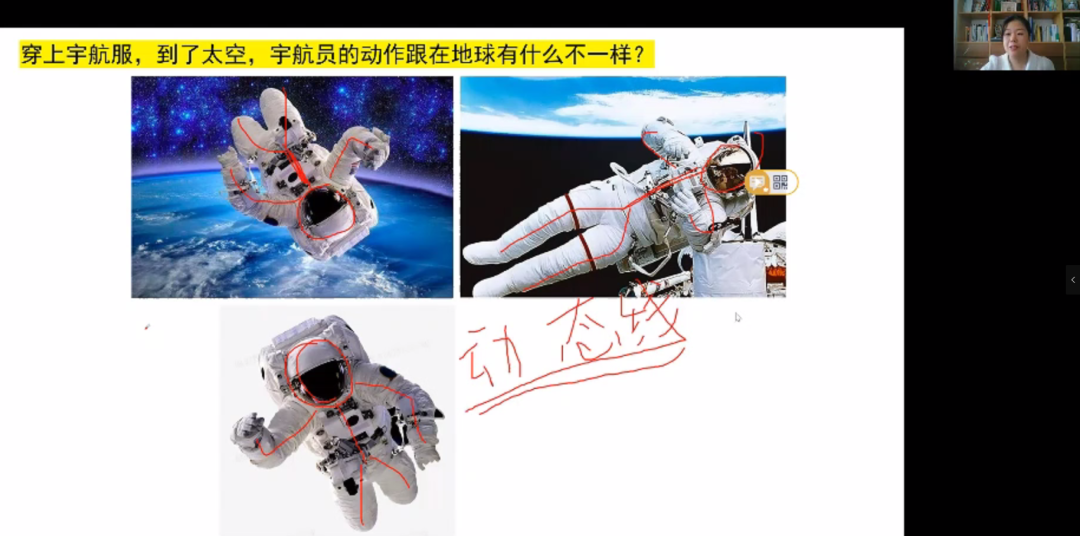 陈纯燕老师一笔一划地示范“载人航天火箭”的绘画步骤、讲解用描“动态线”的方法进行航天服的绘制,并引导学员充分发挥想象力,用手中的画笔绘制出自己心目中的载人火箭以及宇航员的模样。课后,学员们积极地在云端课堂上展示、分享自己的作品。陈纯燕老师一一作了指导与点评,让华裔青少年们受益匪浅。