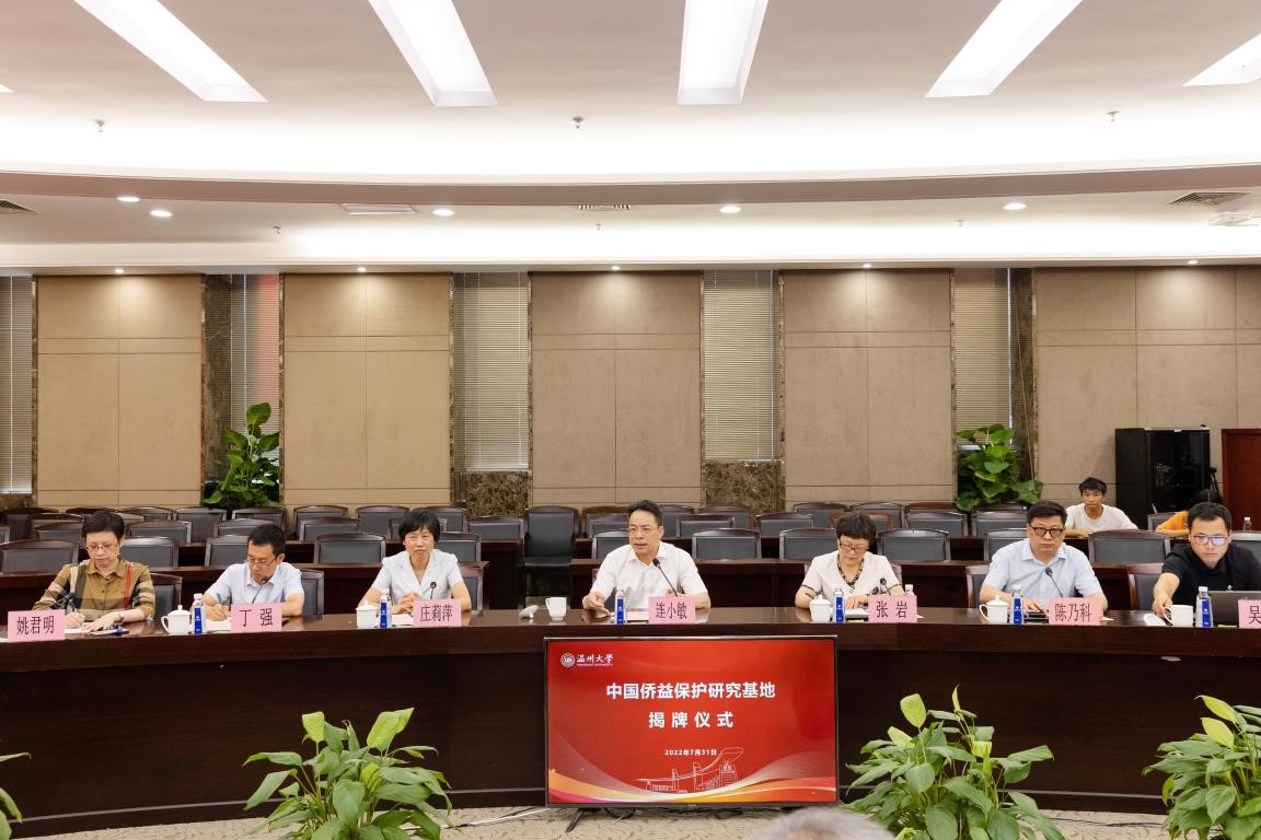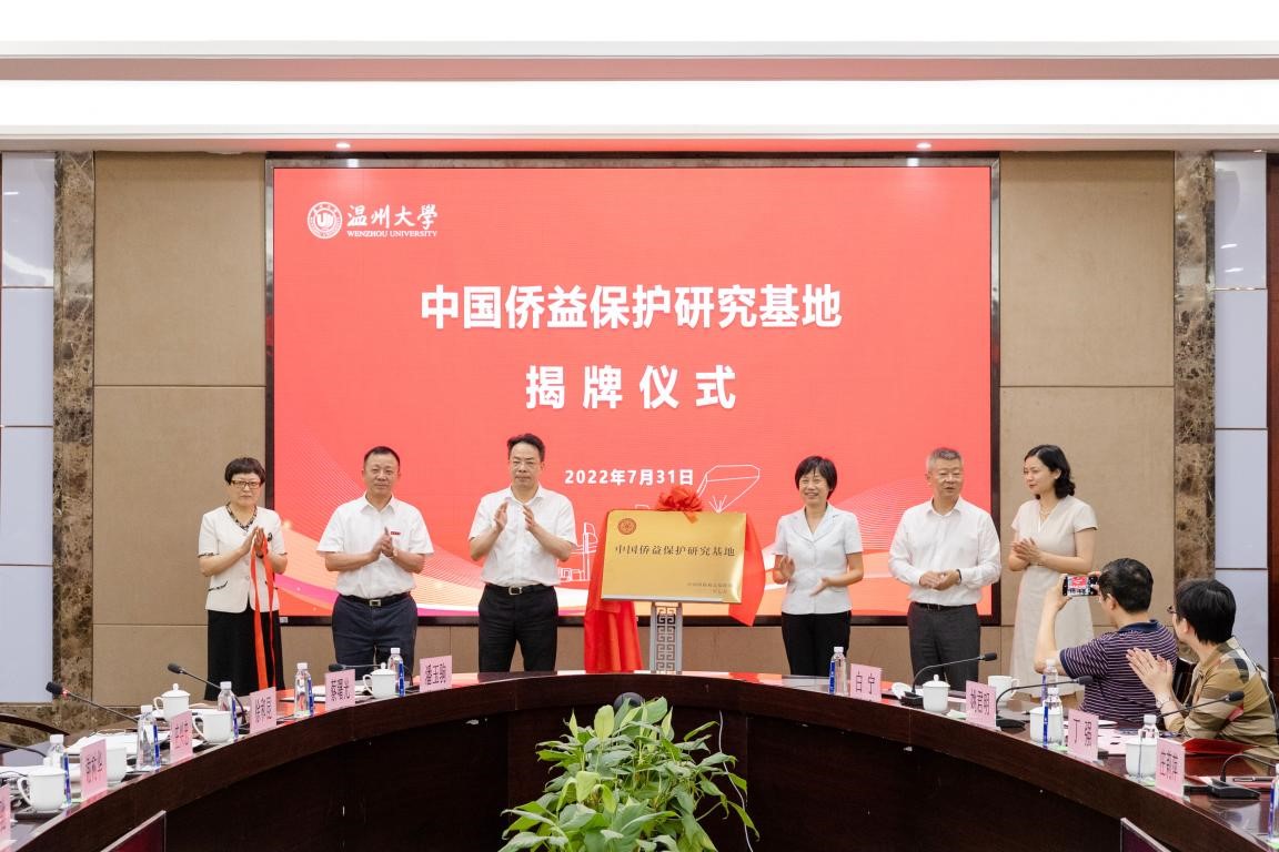 7月31日下午,中国侨益保护研究基地(开云电子(中国)官方网站_开云电子(中国)官方网站)揭牌仪式在开云电子(中国)官方网站_开云电子(中国)官方网站隆重举行。中国侨联党组成员、副主席候选人连小敏,中国侨联权益保障部部长张岩,浙江省侨联党组书记、主席庄莉萍,温州市委常委、统战部部长汪驰,温州市侨联党组书记吴娜丽,开云电子(中国)官方网站_开云电子(中国)官方网站党委书记谢树华共同为基地揭牌。揭牌仪式由开云电子(中国)官方网站_开云电子(中国)官方网站党委副书记庄兴忠主持。