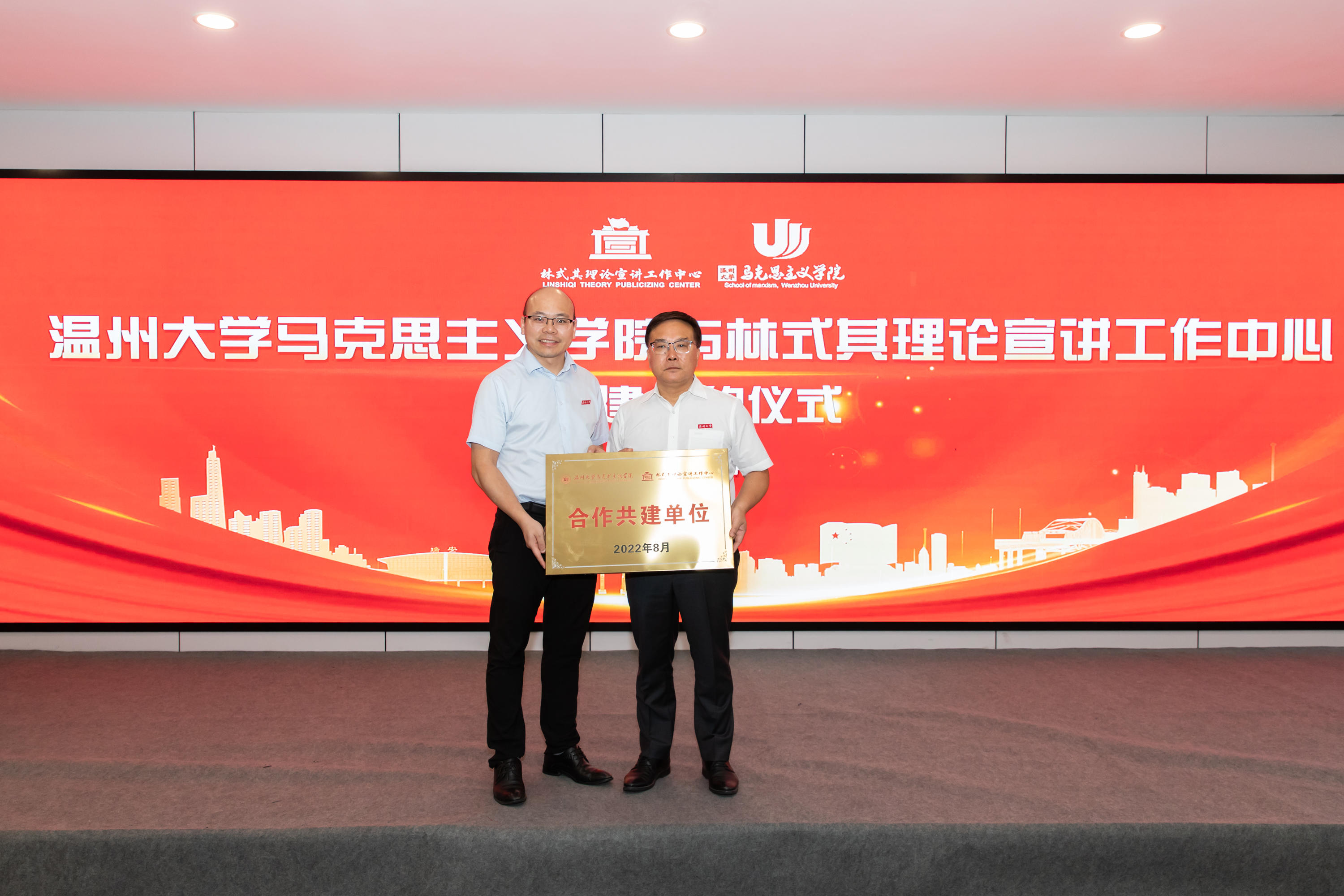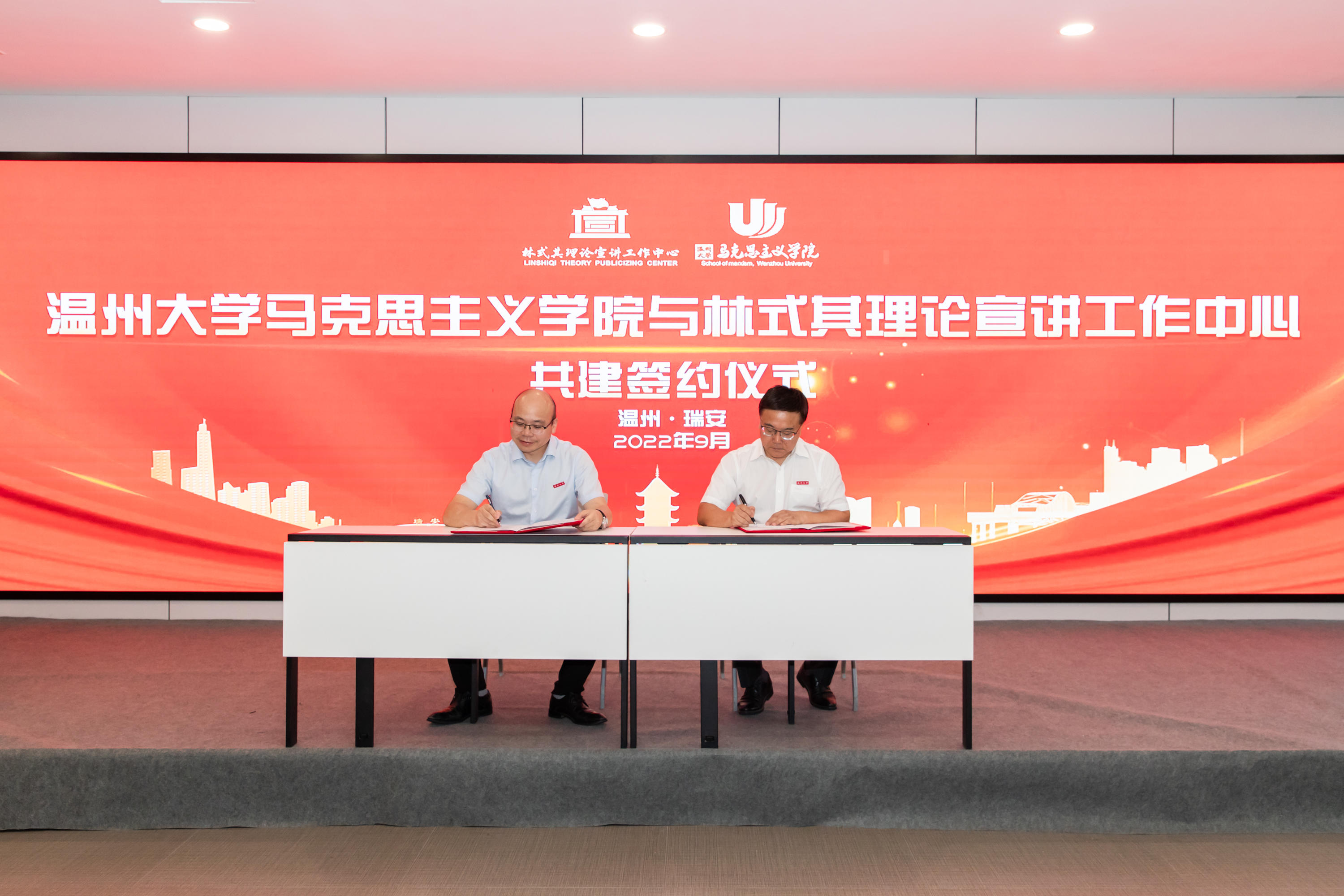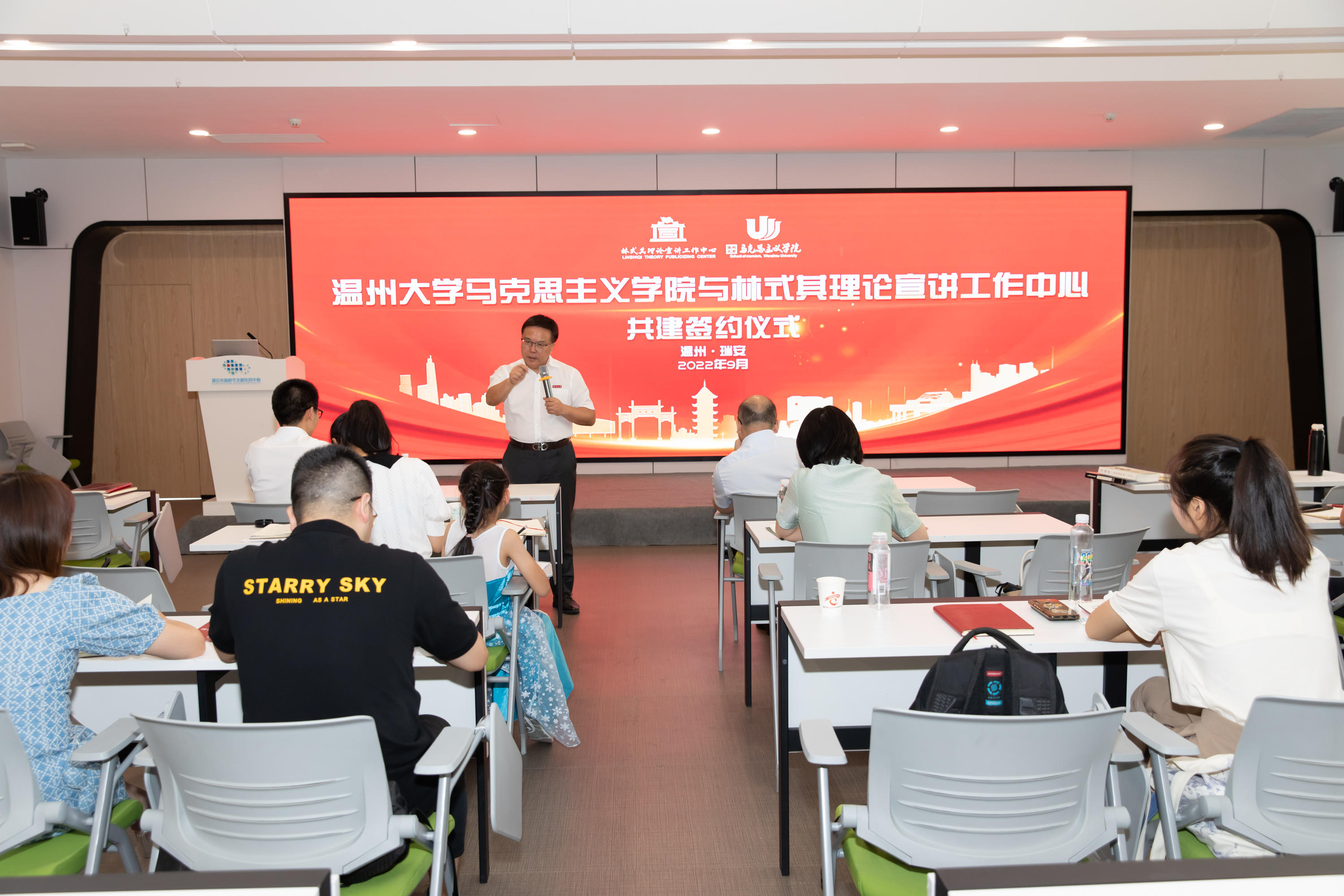 当天在瑞安市新时代文明实践中心,开云电子(中国)官方网站_开云电子(中国)官方网站马克思主义学院院长卓高生和林式其理论宣讲工作中心创办者林式其,共同签署开云电子(中国)官方网站_开云电子(中国)官方网站马克思主义学院与林式其理论宣讲工作中心合作共建协议书,温大马克思主义学院聘请林式其为客座教授。接下来,双方将共同探索建立高校与基层宣讲人才互派交流、宣讲活动联动举办、理论研究共研共享的机制,打造理论宣讲的全新阵地。