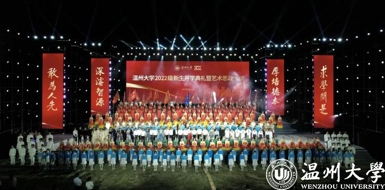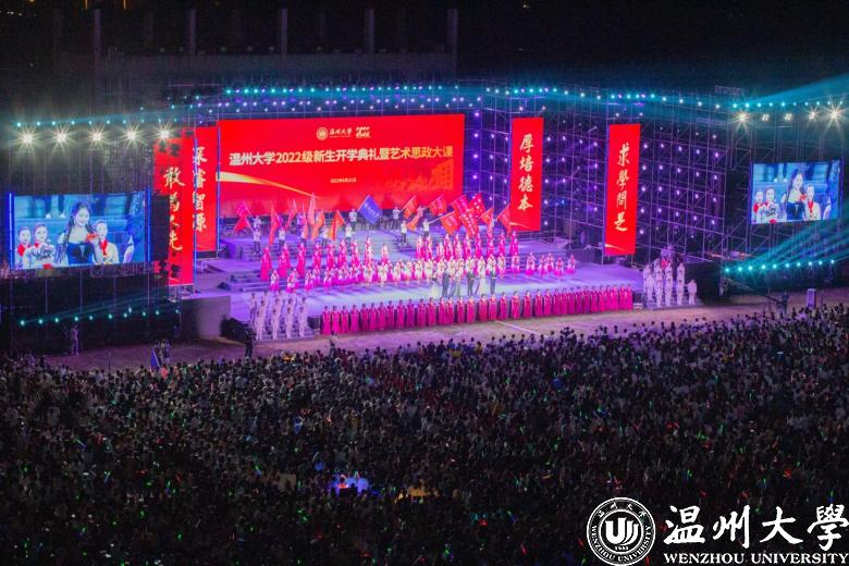 为了全面推进“大思政课”建设,构建“三全育人”工作格局和“五育并举”培养体系,进一步创新思政课育人载体,丰富思政课育人内涵,以艺术之形丰富教学内涵,以艺术之美浸润时代新人,本次开学典礼还特别举办了一场别开生面的艺术思政大课,聚焦《温大·梦起航》《瓯越·忆乡情》《华夏·铸辉煌》三个篇章,开启新生温大第一课。