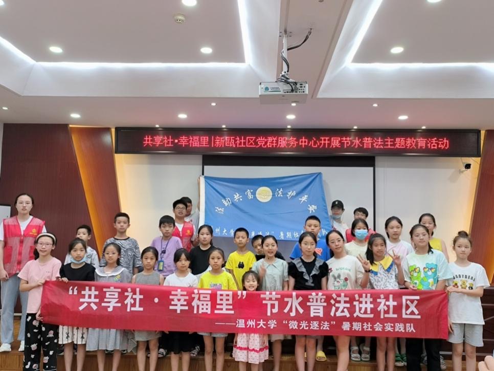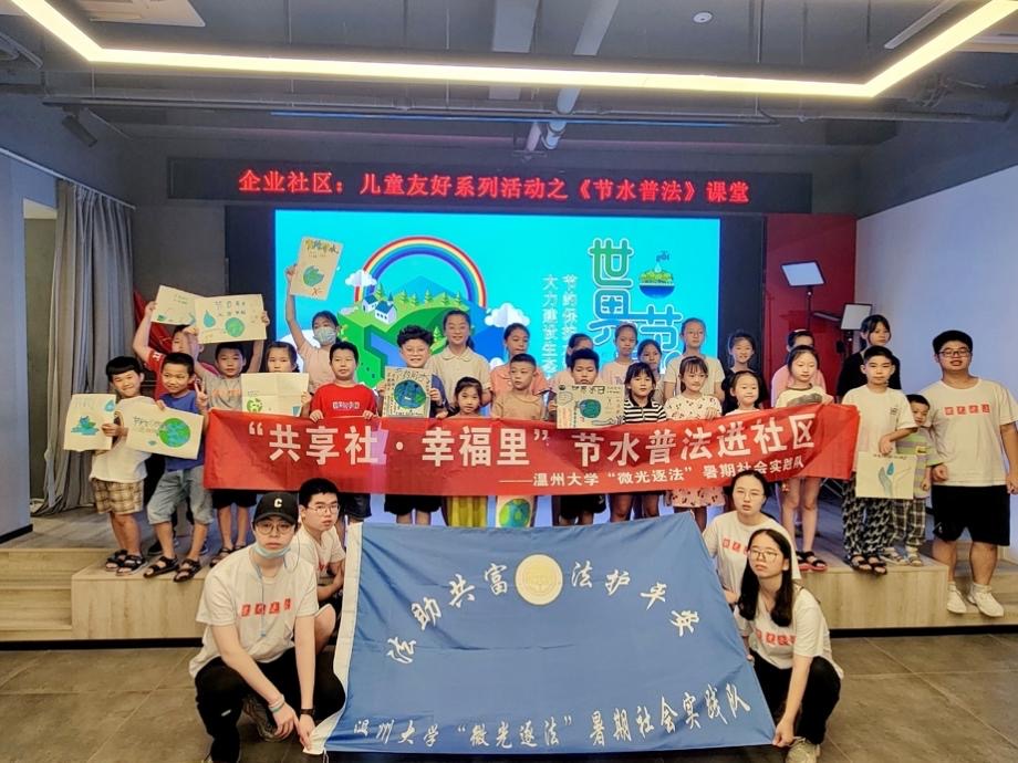 法治教育服务队还积极响应温州市全面部署推进“共享社·幸福里”建设和温州市“为未来节水·节水在身边——节水公开课”活动的号召,联合瓯海区团委,结合自身法治特色,率先推出“‘共享社·幸福里’节水普法进社区”系列活动,并在瓯海区茶山街道梅泉社区、经济开发区企业社区、梧田街道明瓯社区、新桥街道新瓯社区等6个社区开展试点,收获颇丰。“温州市‘共享社·幸福里’建设助老扶幼,是持续改善民生、增进民生福祉的大事,是温州市的创举!此次很荣幸能参与到“共享社·幸福里”的建设中,实践队也决定将“‘共享社·幸福里’节水普法进社区”系列活动努力建设成温大特色品牌,常态化开展,持续为温州市“共享社·幸福里”建设递交温大学子的完美答卷!”实践队副队长章志铖对记者说道。