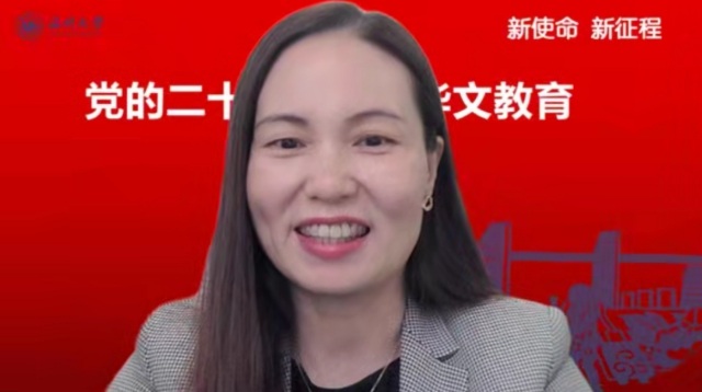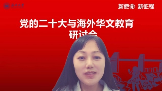 会上,开云电子(中国)官方网站_开云电子(中国)官方网站华侨学院院长、开云电子(中国)官方网站_开云电子(中国)官方网站欧洲华文教育研究所所长包含丽做党的二十大关于华文教育和文化传承专题解读。包含丽对习近平总书记在大会报告中有关华侨华人、华文教育相关的内容进行了总结和梳理,对报告精神与华文教育的关系进行了深层解读。她指出,华文教育在党和国家发展的新征程中,明确了新目标、新方向、新地位,同时也肩负了新使命。她认为,华文教育未来可期,前景美好。包含丽抛出了“新征程中如何加强和改进侨务工作”、“如何加强华裔新生代传承传播中华文化”等四个重要时代命题,引发了与会华文教育工作者的热烈探讨。