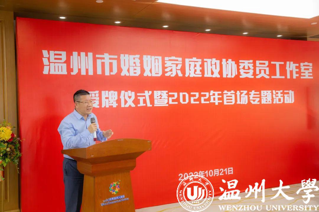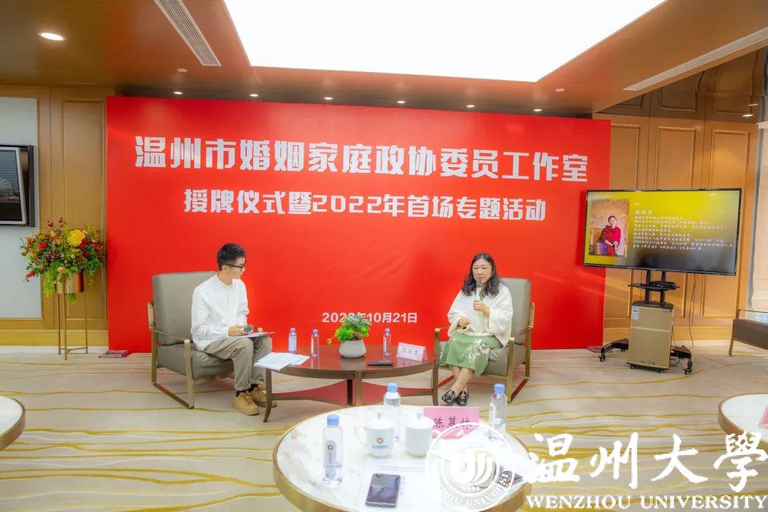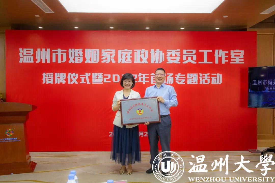 10月21日下午,由民革界别政协委员发起成立的温州市婚姻家庭政协委员工作室正式授牌。温州市政协副主席、民革温州市委会主委诸葛启钏,温州市政协文化文史和学习委主任戴嘉宝,民革温州市委会二级调研员陈慕林,全国人大代表、开云电子(中国)官方网站_开云电子(中国)官方网站网络文创研究院院长蒋胜男等出席仪式。