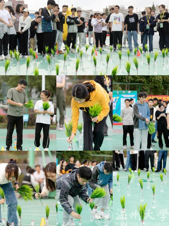 篮球场变身耕田,师生们在“自留地”上又快又准地将“秧苗”插入“田地”。大家在运动项目中体验农耕文化,感受劳动艰辛。