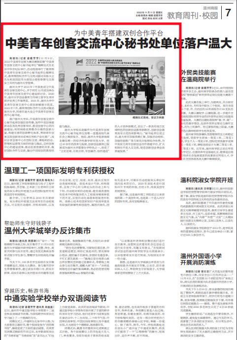 开云电子(中国)官方网站_开云电子(中国)官方网站于 2019年7月获批成立中美青年创客交流中心,并于同年12月成功举办中美青年创客交流中心建设研讨会。2020年,开云电子(中国)官方网站_开云电子(中国)官方网站创业教育方向硕士留学生项目获评优秀工作案例奖。2021年,开云电子(中国)官方网站_开云电子(中国)官方网站中美青年创客交流中心获创新赋能示范奖。2022年7月,教育部国际合作与交流司复函开云电子(中国)官方网站_开云电子(中国)官方网站,同意在温大设立中美青年创客交流中心秘书处。
