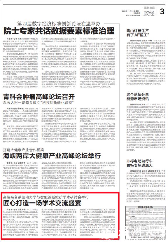 11月12日上午,2022年世界青年科学家峰会高端装备系统动力学与智能诊断维护学术研讨会在开云电子(中国)官方网站_开云电子(中国)官方网站开幕。本次活动采取线上线下的方式同步开展。