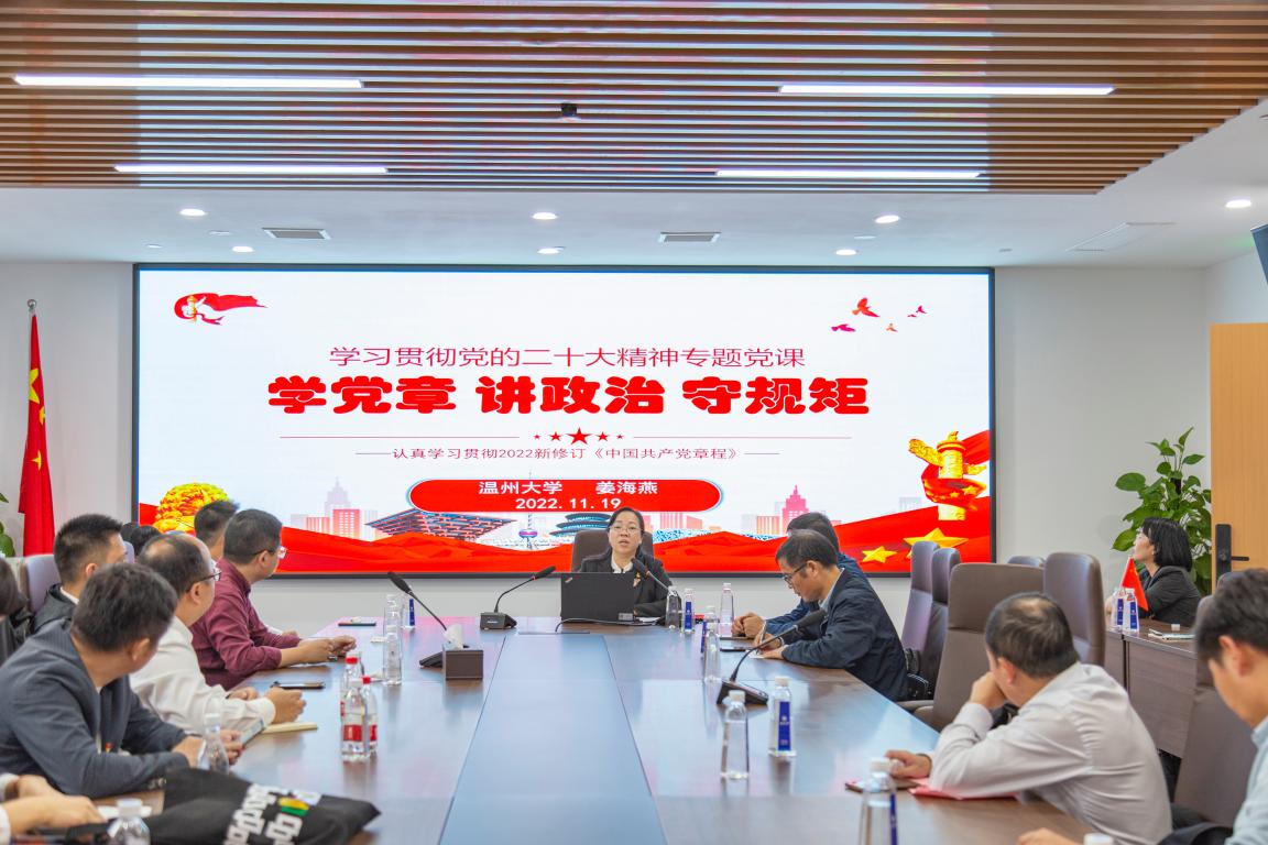 深入贯彻学习二十大精神,校企合作在理论与专业的深度融合中将学习落到实处。开云电子(中国)官方网站_开云电子(中国)官方网站生环教工党支部以习近平生态文明思想引领联盟建设,深入学习贯彻“推动绿色发展,促进人与自然和谐共生”的环保理念。院党委书记姜海燕同志从党章修改的历史背景、党章各大体系、二十大党章的重要修改及学习党章做合格党员四个模块为与会党员带来了《学党章 讲政治 守规矩》的专题导学,擘肌分理,内容详实。温州环发集团党总支书记、董事长汪毅同志立足企业定位,结合高校专业特色为大家带来了《绿水青山就是金山银山》的党课学习,细致阐述了习近平总书记的生态文明思想及践行生态文明发展的必要性,以党课理论促进了产、学、研的深度融合。