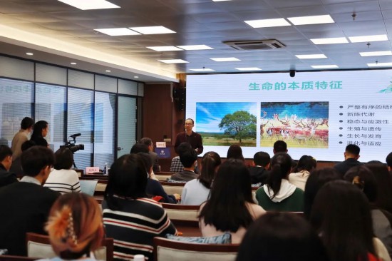 本次论坛采用“TED”学术分享模式,共有三位嘉宾发表演讲。美国耶鲁大学访问学者、教育学院金建钰博士分享了《生命与进化:长颈鹿的脖子为何这么长?》。他先以“长颈鹿脖子为什么这么长”设问,激发听众对生命进化的思考,再从拉马克的获得性遗传到达尔文的自然选择,引出1986年的“性选择”新猜想。最终,通过27年的不懈探索,中国团队2022年在《Science》上发文解开“怪兽”之谜。求学问是,真不容易!